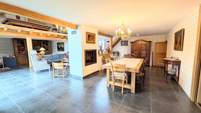 A42937CYC87 - This beautiful country home combines authentic charm with modern comfort, featuring exposed beams, tiled floors, and a cosy lounge with fireplace. The stunning barn conversion creates a bright, spacious living area with a striking central fireplace and large patio doors opening onto the garden, complemented by a dining area and dedicated office space.