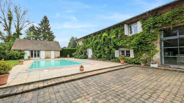 Outside, enjoy a swimming pool with pool house or studio potential, landscaped gardens, terrace, and a substantial barn for parking or workshop use.