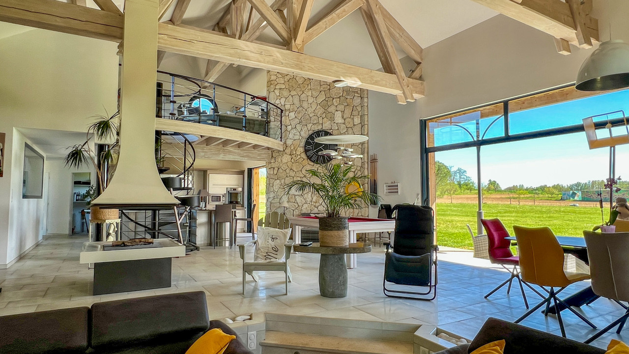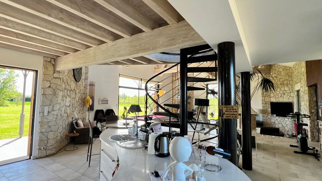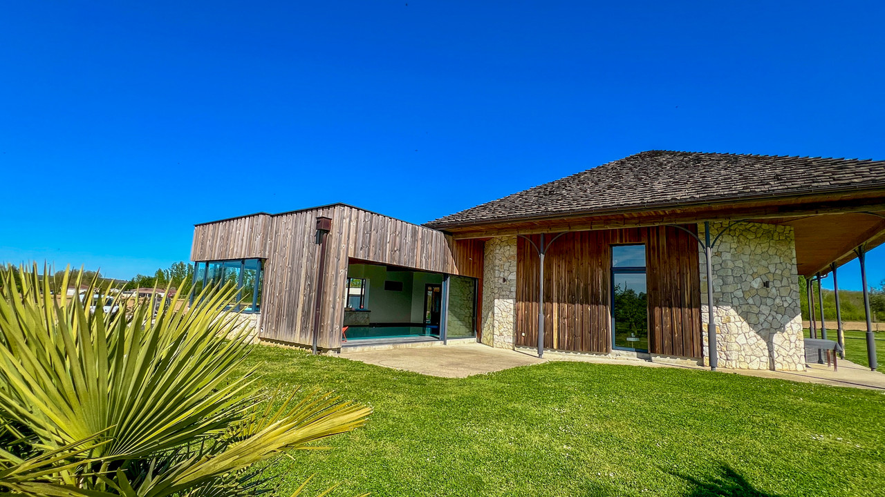 A43974GJP47 - An exceptional property, combining contemporary elegance with a commitment to sustainability. A bespoke, single-storey home offering three suites with luxurious bathrooms, striking a perfect balance between design and nature. Built using fine materials, reclaimed antique stone and sustainable timber, it embodies a refined lifestyle in the heart of south-west France. Natural light enhances the generous spaces. The open-plan living areas, comprising a high-end kitchen with a pantry, a dining room and a lounge, extend outwards through large sliding glass doors. The wellness area, featuring a heated indoor swimming pool, spa and sauna, extends this atmosphere of serenity, opening directly onto the terraces and gardens. Set on a 6,768 m² plot, in a quiet cul-de-sac, the property enjoys a prime location near Eymet and Bergerac. A wine cellar and solar panels complete this rare property. Information about risks to which this property is exposed is available on the Géorisques website : https://www.georisques.gouv.fr