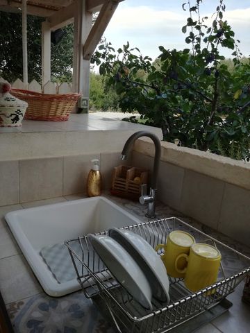 Además, la propiedad aún se puede ampliar en unos 40 metros cuadrados además de la sala técnica. La propiedad se utiliza como alojamiento y desayuno en los canales de alquiler nacionales e internacionales más importantes con puntuaciones de retroalimentación muy altas. La tierra bien cuidada es de aproximadamente una hectárea, plantada con olivares, almendros y huertos. La masía se encuentra en una zona tranquila y privada, ideal para los amantes de la privacidad pero con todas las comodidades.