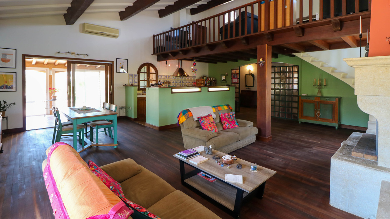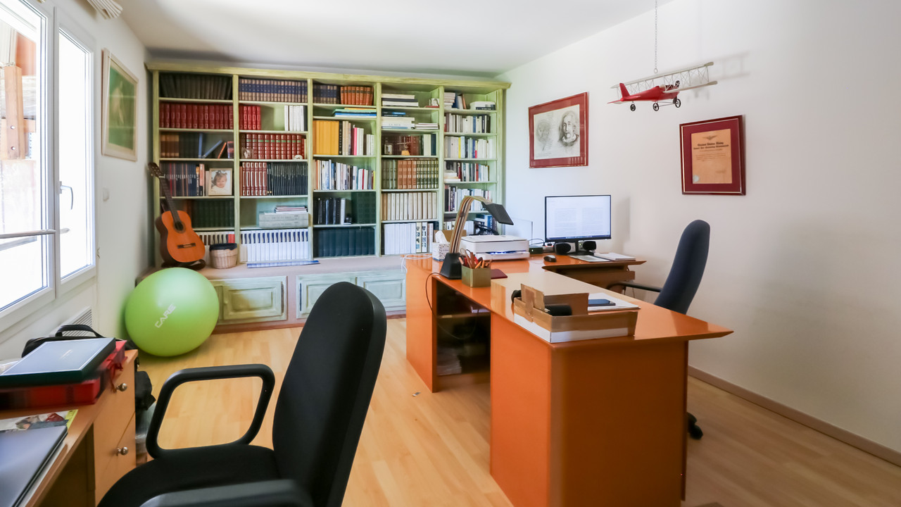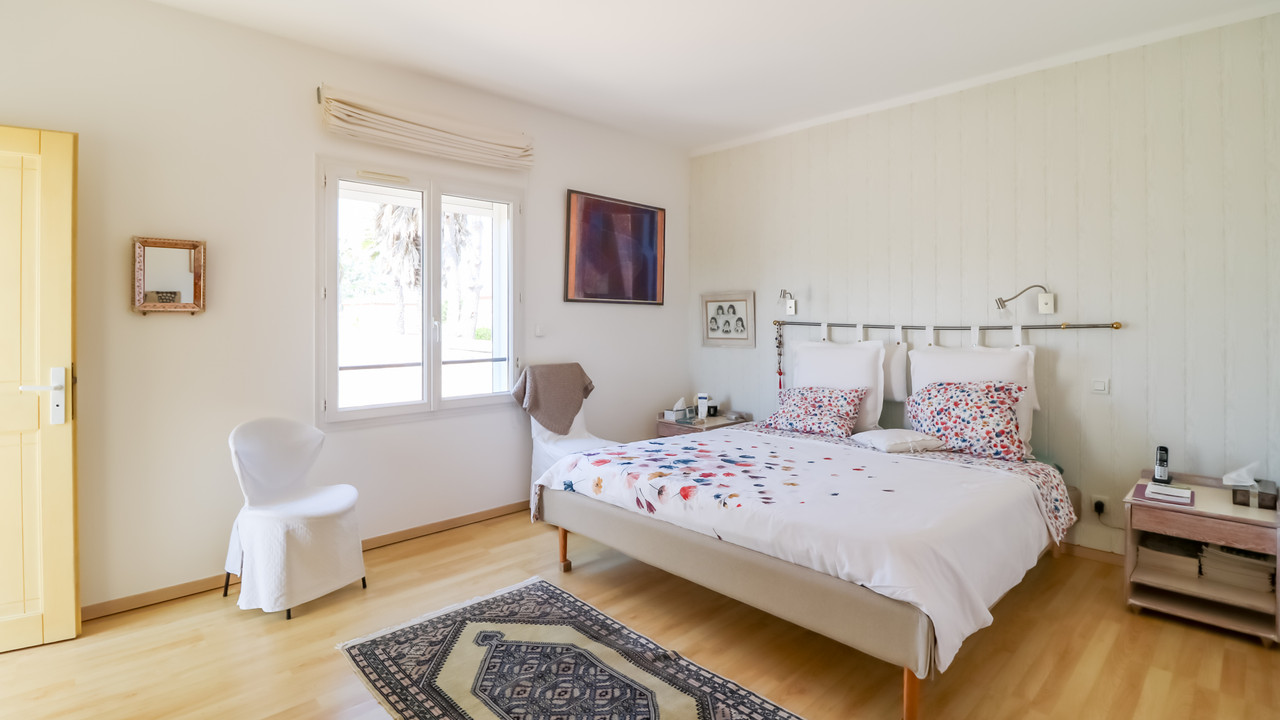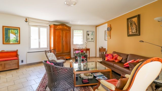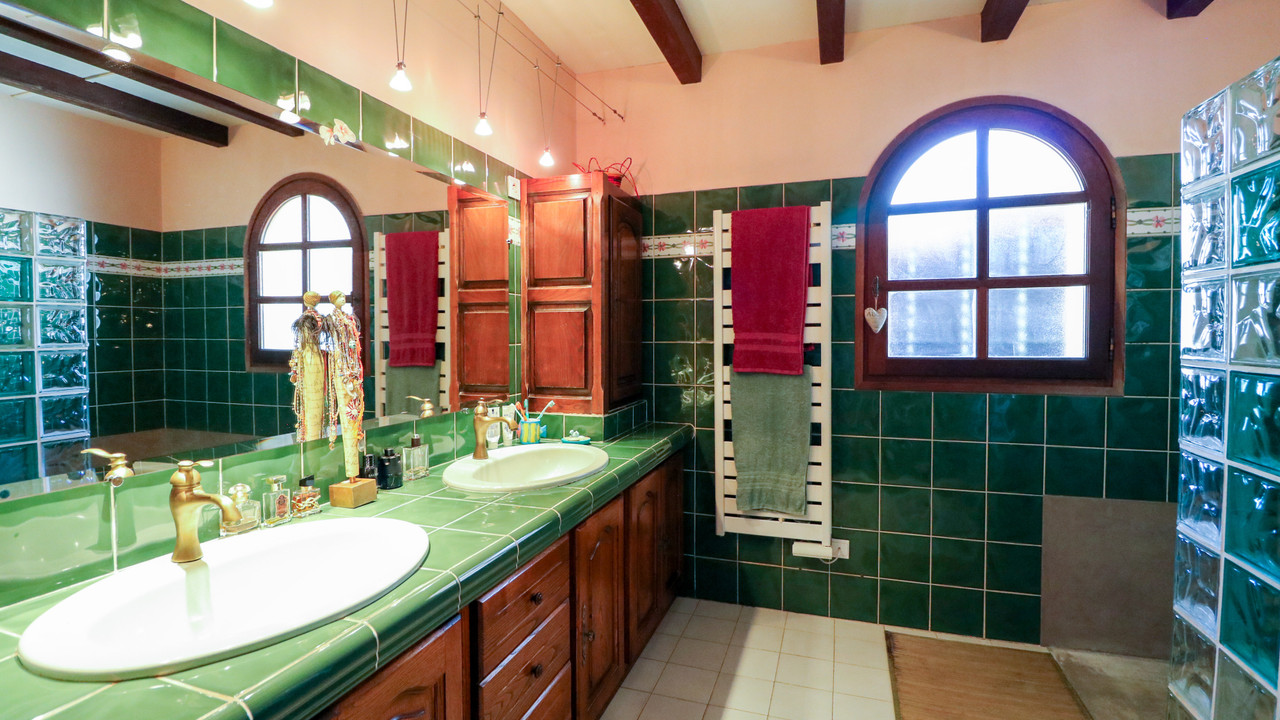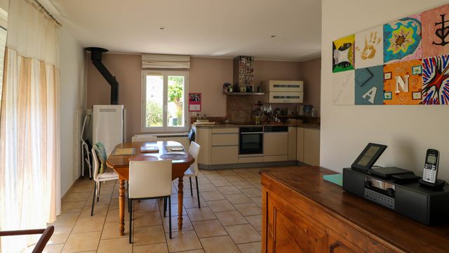 2 detached villas (151.40 m² and 149 m²) Total: 7 bedrooms, 3 bathrooms, 4 WCs 1 garage, covered parking, and patio areas Construction years: 1988 and 2003 practical layout for single-level living Heating: heat pump, reversible air conditioning, pellet stove Solar panels with annual income Water softener, double glazing, parquet floors