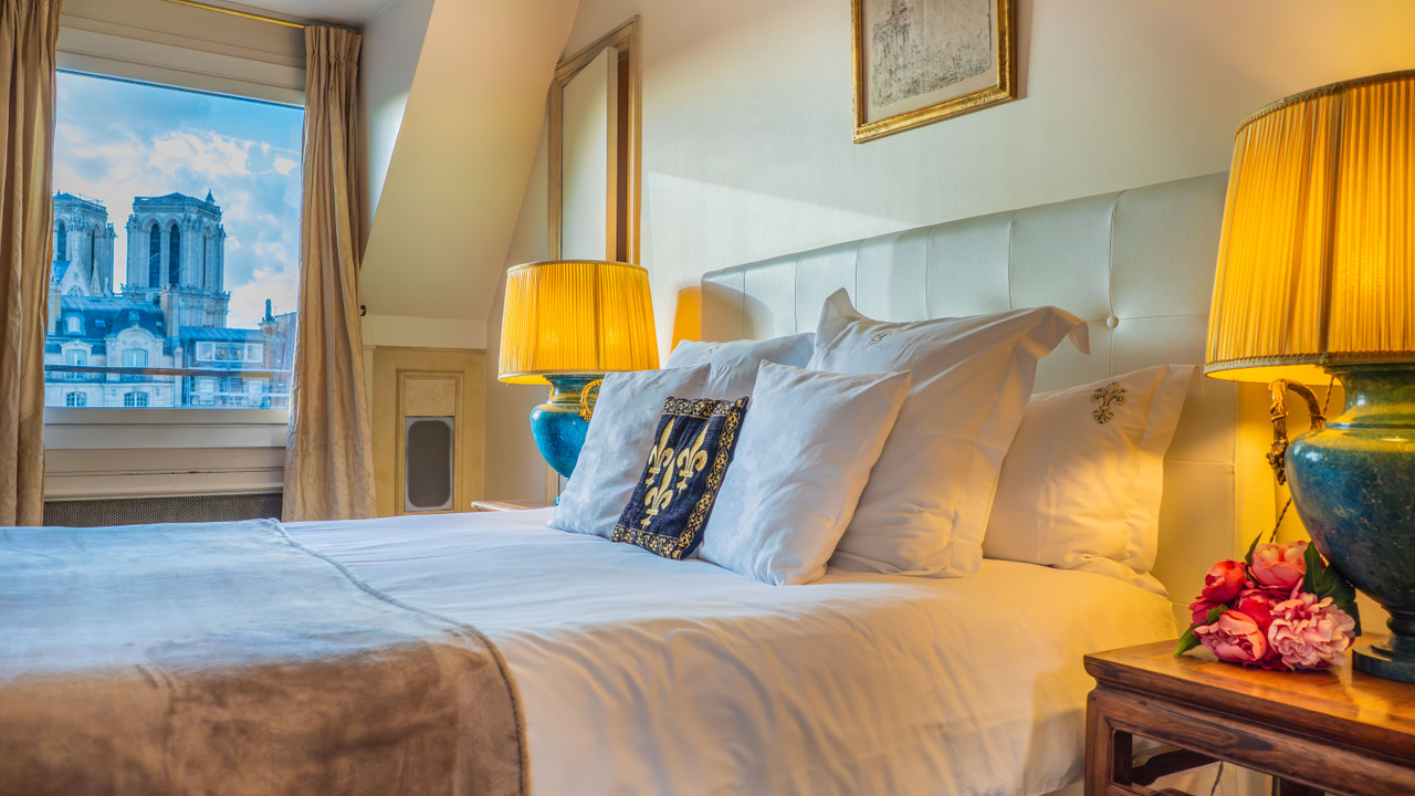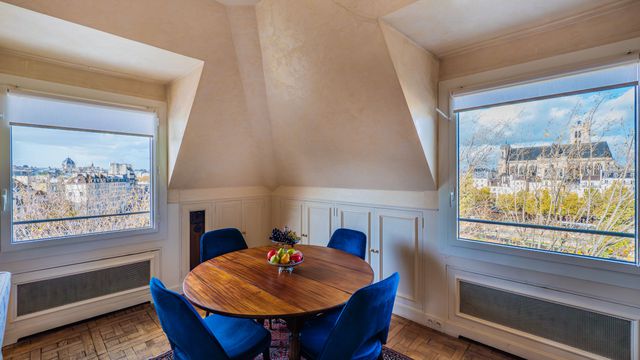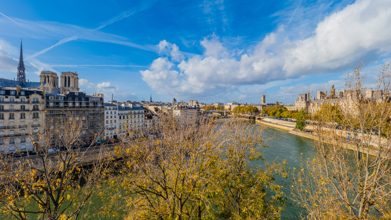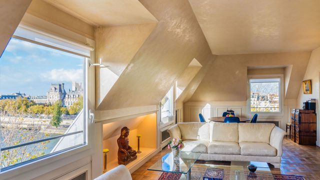 Calme et sérénité absolue, triple exposition Sud, Ouest et Nord, dont 8 fenêtres offrant des tableaux vivants et panoramiques sur la Seine, l'Ile de la Cité, les tours de Notre Dame, l' Hôtel de Ville et de nombreux monuments historiques.