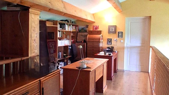 On the first floor, there is a large mezzanine that serves as an office, three bedrooms, two of which have terraces, one bathroom, one shower room, two WCs and an attic.