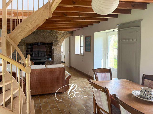 Dès l'entrée, vous découvrirez un spacieux salon avec une lumière traversante agrémenté d'une grande cheminée traditionnelle dans lequel un poêle à bois a été installé, idéal pour des moments conviviaux en toute saison. Le rez-de-chaussée comprend également une cuisine avec accès sur le jardin, une salle de bain et des toilettes indépendantes.