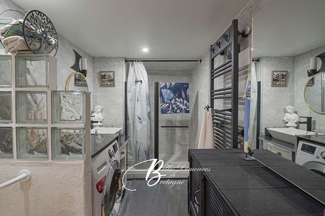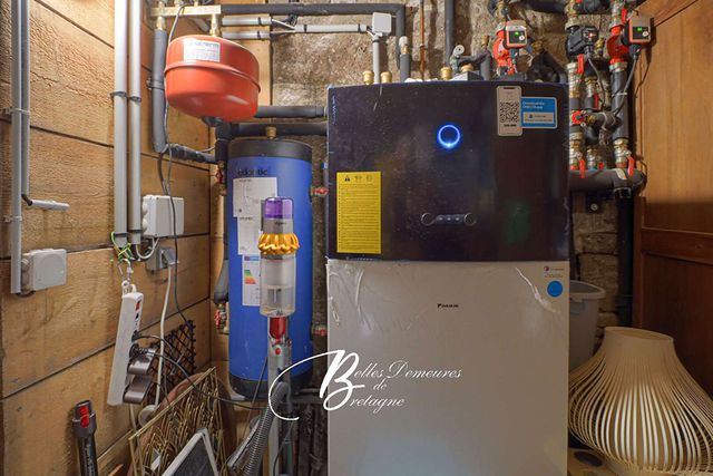 De l'autre, un salon pouvant faire office de chambre, une salle d'eau avec WC et buanderie, ainsi qu'une chaufferie équipée d'une pompe à chaleur récente.