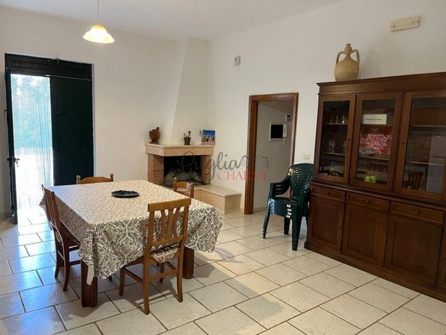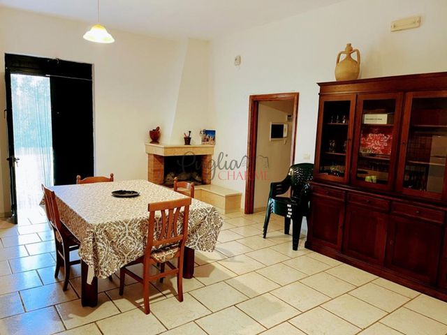 La propriété dispose de beaux espaces extérieurs, une place en roche vivante, une place avec coin barbecue et four à bois, un parking, un buvette sous les oliviers, un splendide jardin avec plantes et arbres de toutes sortes, un accès par l'avenue réalisée avec de splendides pierres locales et tous les espaces extérieurs sont équipés d'éclairage, de plus la maison dispose d'une terrasse plate avec une vue panoramique sur la campagne de la vallée d'Itria.