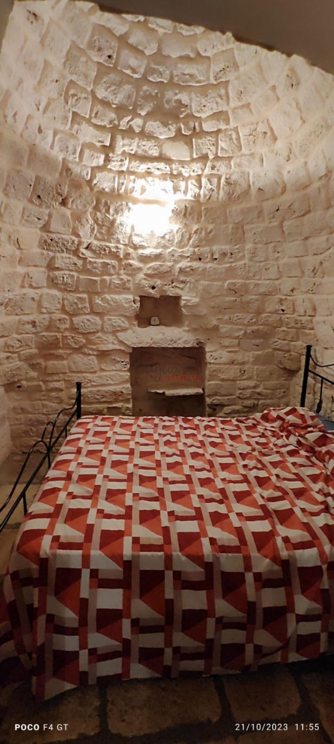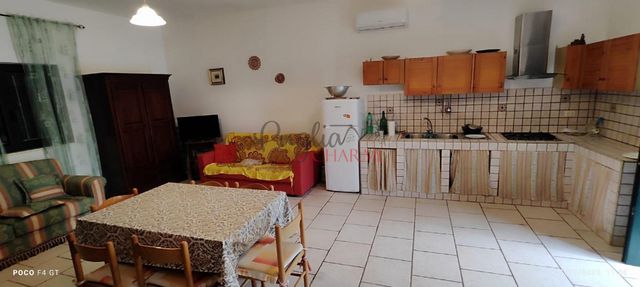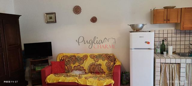 le deuxième appartement se compose d'un grand séjour avec une cuisine ouverte, une chambre confortable dans le cône du trullo et une salle de bain, dispose d'une cheminée, climatisation, système d'alarme. Il y a aussi la possibilité de créer une deuxième chambre à l'intérieur du grand salon.