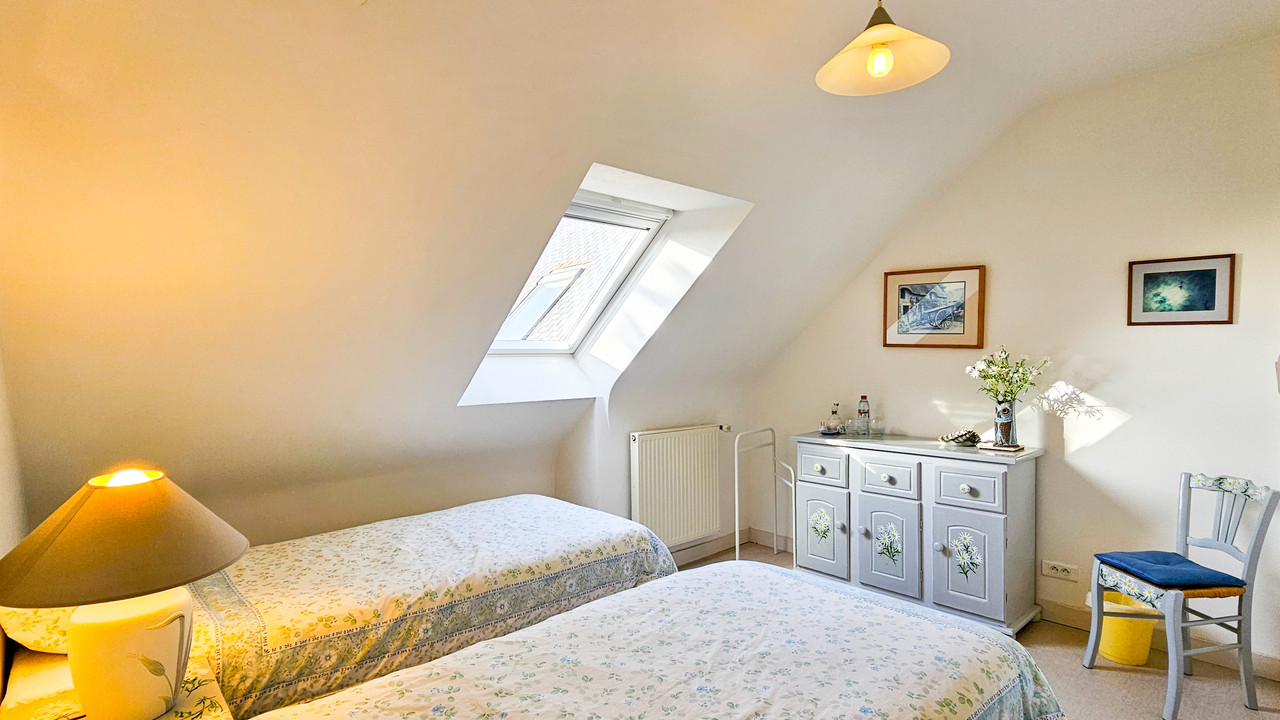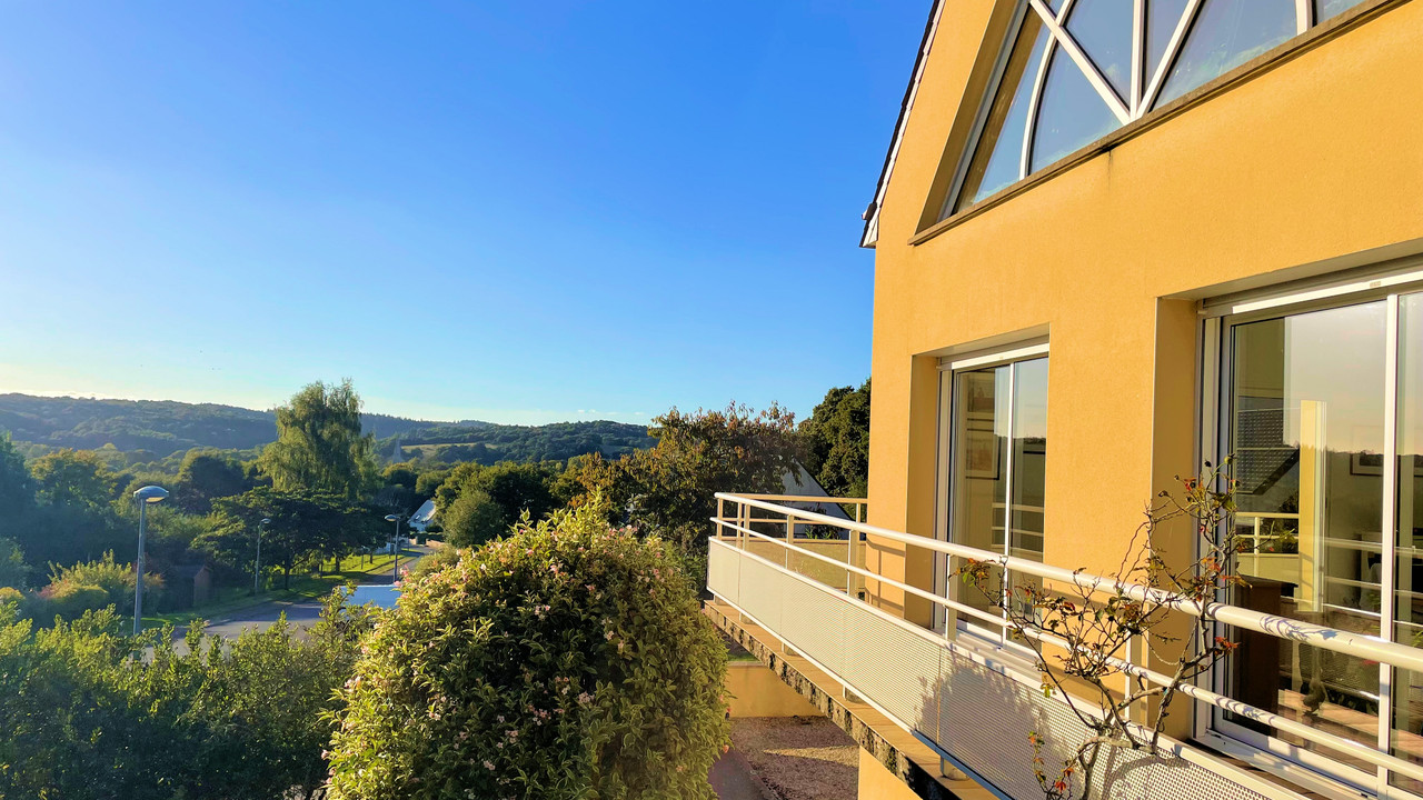 A40285EAM56 - Construite en 2005, cette maison moderne de quatre chambres allie confort, fonctionnalité et luminosité. Son emplacement surélevé offre une vue imprenable, avec de magnifiques couchers de soleil à admirer depuis la terrasse panoramique. Une chaudière à gaz à condensation récemment remplacée (réservoir enterré de 1 200 litres) et un poêle à bois assurent un confort optimal toute l'année. Le rez-de-chaussée comprend une superbe véranda, un salon, une cuisine, une salle d'eau avec WC, un WC invités et deux chambres doubles. À l'étage, on trouve deux autres chambres, une salle d'eau, une mezzanine et un grenier aménageable. Le sous-sol offre un parking sécurisé pour deux voitures, un atelier, une buanderie, un espace de rangement et un WC. À l'extérieur, un jardin paysager avec volets roulants motorisés, une serre et un système de récupération d'eau de pluie de 5 000 litres complètent le tout.