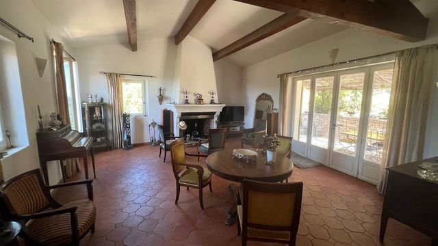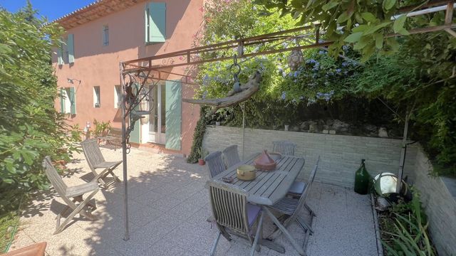 A39547GWI83 - Charmante maison dans le village de Cotignac avec 2 245 m² de jardin, piscine et grand garage. Le village est à deux pas ! La propriété, joliment présentée, comprend 3 chambres, un spacieux séjour/salle à manger, une cuisine, 2 salles de bains et WC. Elle jouit également d'une cuisine et d'un séjour. Dans un environnement privé, elle offre une vue imprenable sur le village et le paysage provençal.