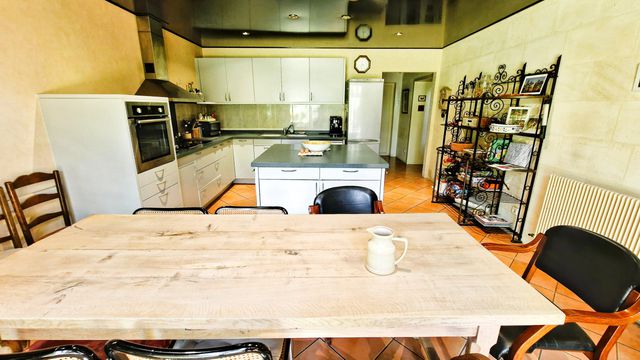 Cuisine équipée, salle à manger, cellier, buanderie et cave à vin