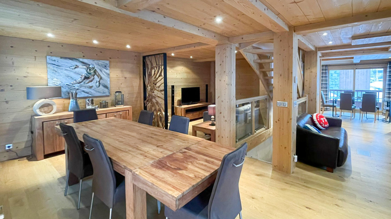 A33999EH73 - Découvrez ce chalet très élégant avec 10 couchages, construction en 2012 située dans le village très charmant Le Bettex, au cœur de la vallée de Belleville – 3 Vallées. Avec 179 m² de surface Loi Carrez, avec 24 m2 supplémentaires sous les combles dont une surface au sol de 203 m2, cette propriété moderne est lumineuse a était bien conçue. Avec 3 grandes chambres ensuite (avec couchages supplémentaires dans les alcôves pour jusqu'à 10 personnes), des équipements de qualité tels qu'un hammam, terrasses ensoleillées, garage privé, ski room et des places de parking en complément ; ce chalet lié le confort, le joli style et l'accessibilité à seulement une petite marche d'approche pour rejoindre la piste et le télésiège du Bettex.