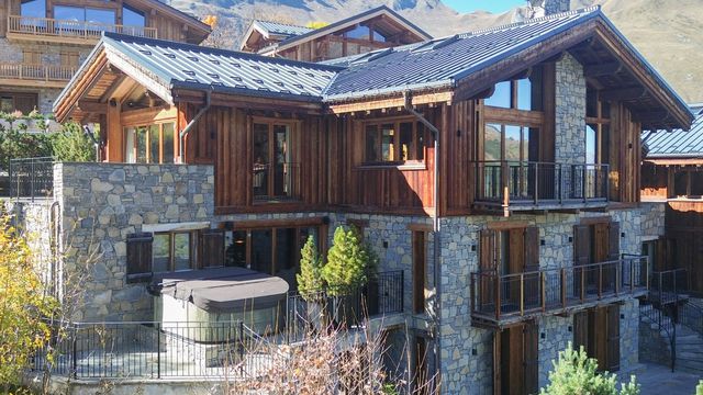 A40732EH73 - Perché sur les hauteurs du paisible hameau alpin du Chatelard, à seulement 1,5 kilomètre du cœur de Saint-Martin-de-Belleville et du célèbre domaine skiable des 3 Vallées, ce magnifique chalet de quatre chambres capture l'essence même du confort contemporain à la montagne. Achevé en 2020, il fait partie d'un petit ensemble exclusif de quatre chalets, chacun conçu pour s'intégrer harmonieusement au paysage naturel, tout en offrant des vues panoramiques imprenables sur la vallée des Belleville et les sommets majestueux environnants.