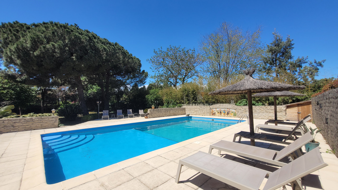Implantée sur un parc paysagé de plus de 4 600 m² sans vis-à-vis, la propriété offre calme, intimité, de beaux volumes et une grande terrasse très ensoleillée avec piscine.