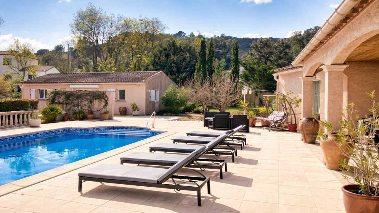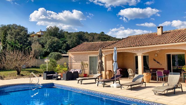 Charmante villa de plein pied au calme avec gite independent, grand terrain, piscine et garage