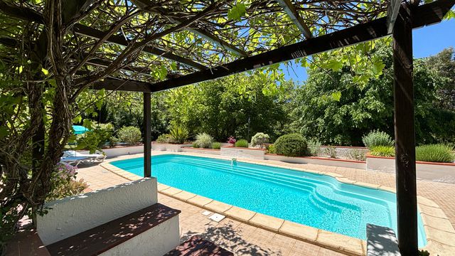 Le tout sur 8 000 m² de terrain paysager avec piscine, terrasses, terrain de pétanque et vue imprenable sur les montagnes.