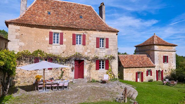 A41173VGR24 - À seulement 20 minutes de l'aéroport de Bergerac, ce superbe domaine du XIXᵉ siècle, entièrement restauré, offre environ 810 m² habitables au cœur de 10,6 hectares de parc, prairies et bois. La maison principale, les granges d'invités, le pigeonnier et le studio allient charme et confort, formant un cadre idéal pour une résidence familiale, un projet hôtelier de charme ou une retraite de bien-être. Espaces de vie élégants, cuisines professionnelles, piscine en pierre de 60 m² avec vue dégagée et sauna en bois complètent cet ensemble d'exception. Alliant authenticité, intimité et modernité, ce domaine rare incarne l'art de vivre à la française, dans un environnement naturel paisible et facilement accessible depuis l'étranger.
