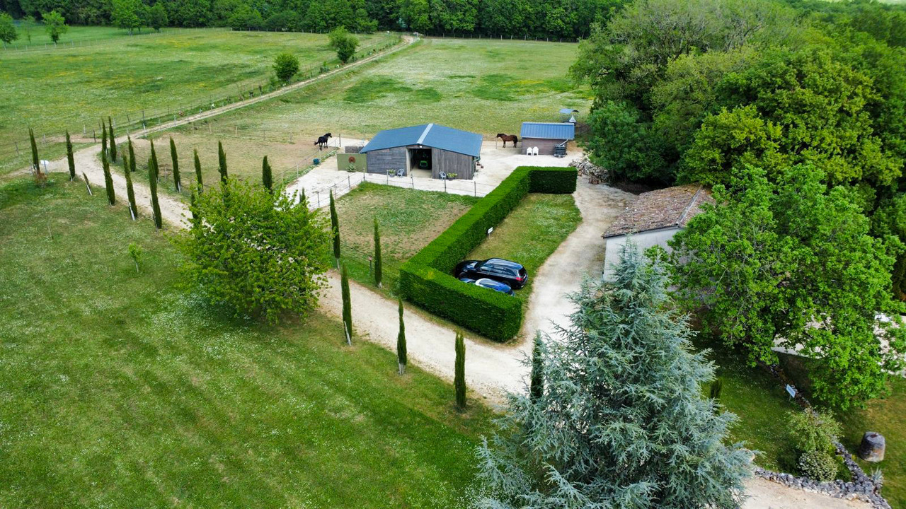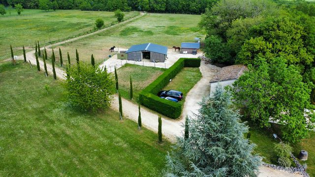 Accessible par un chemin privé, elle dispose d'installations équestres complètes : paddocks clôturés, piste en sable de 600 m, écurie avec 4 boxes et abri.