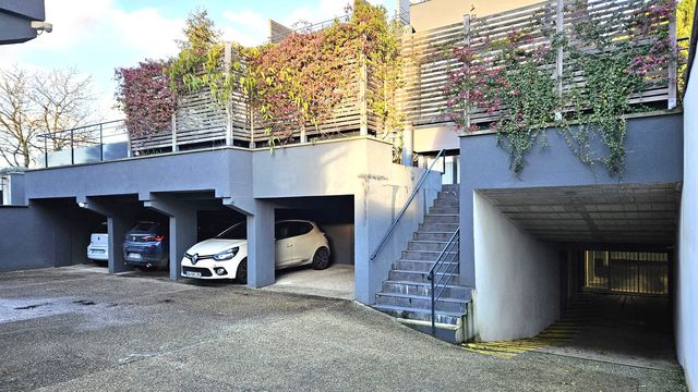 Entouré sur 3 côtés par un jardin privé, il y a 4 garages et 2 places de parking dans un parking sécurisé sous l'immeuble. Avec ses garages et son potentiel de stockage supplémentaire, il offre un potentiel commercial.