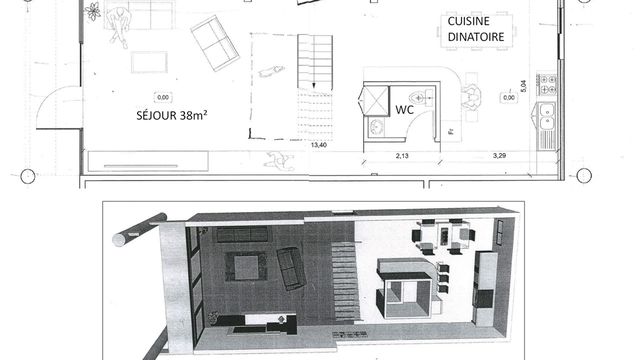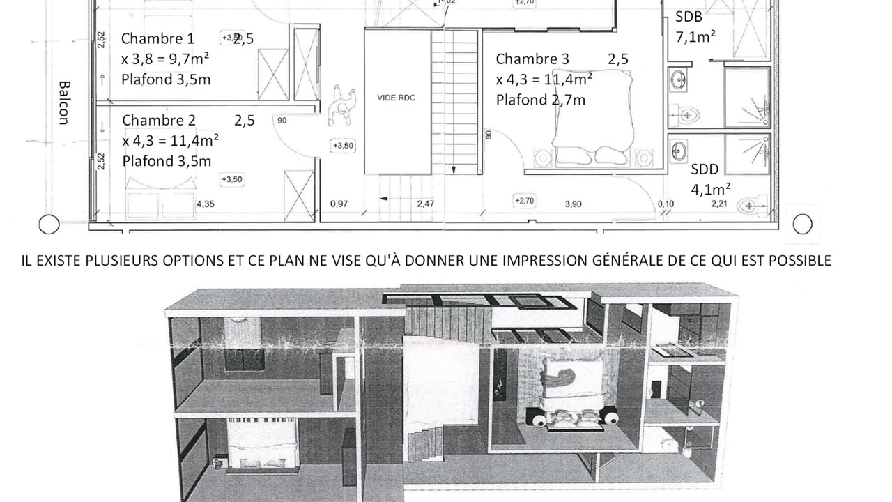 Il offre une surface totale potentielle de 170m² avec une hauteur de plafond au rez-de-chaussée de 3,1m.