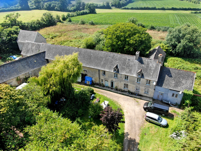 Une ferme normande typique en pierre, entourée d'un hectare de terrain, située dans un environnement champêtre et isolé.