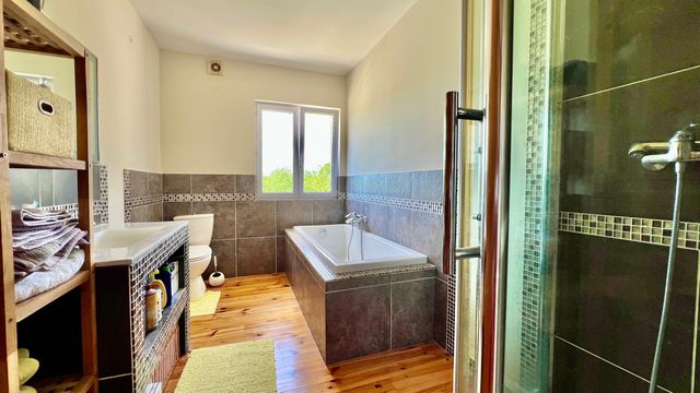 La maison principale est entièrement équipée de double vitrage, le chauffage est assuré par des radiateurs électriques modernes et poele a bois.