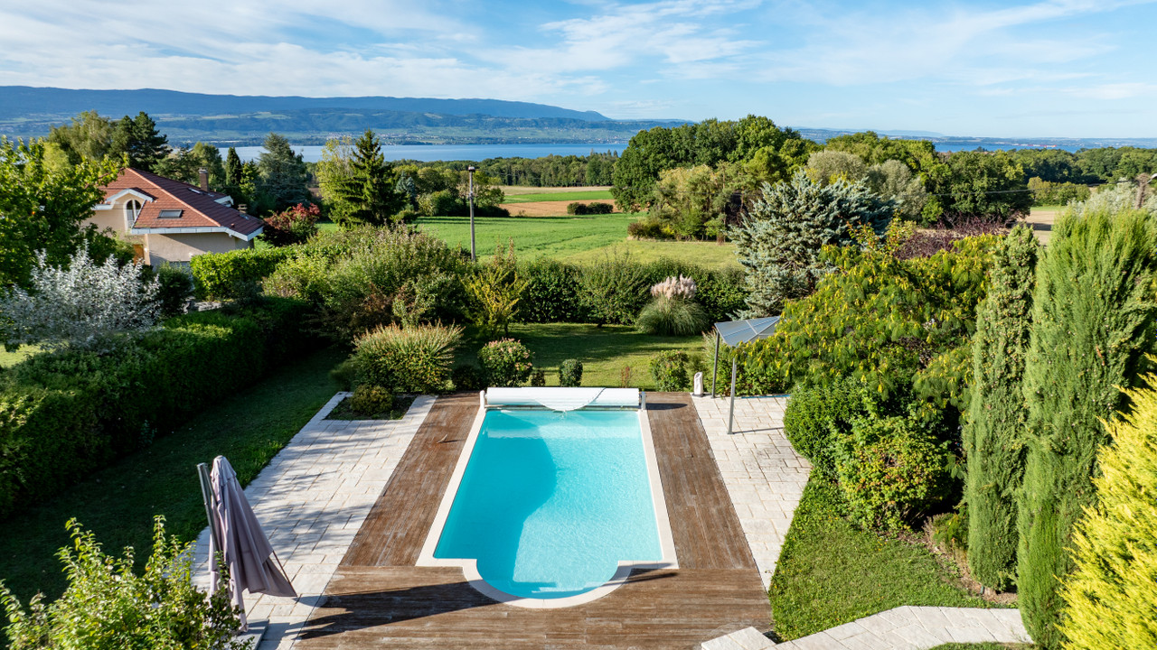 Grand maison plein pied avec beaucoup de potentiel, vue sur le lac, jardin clos et piscine chauffée