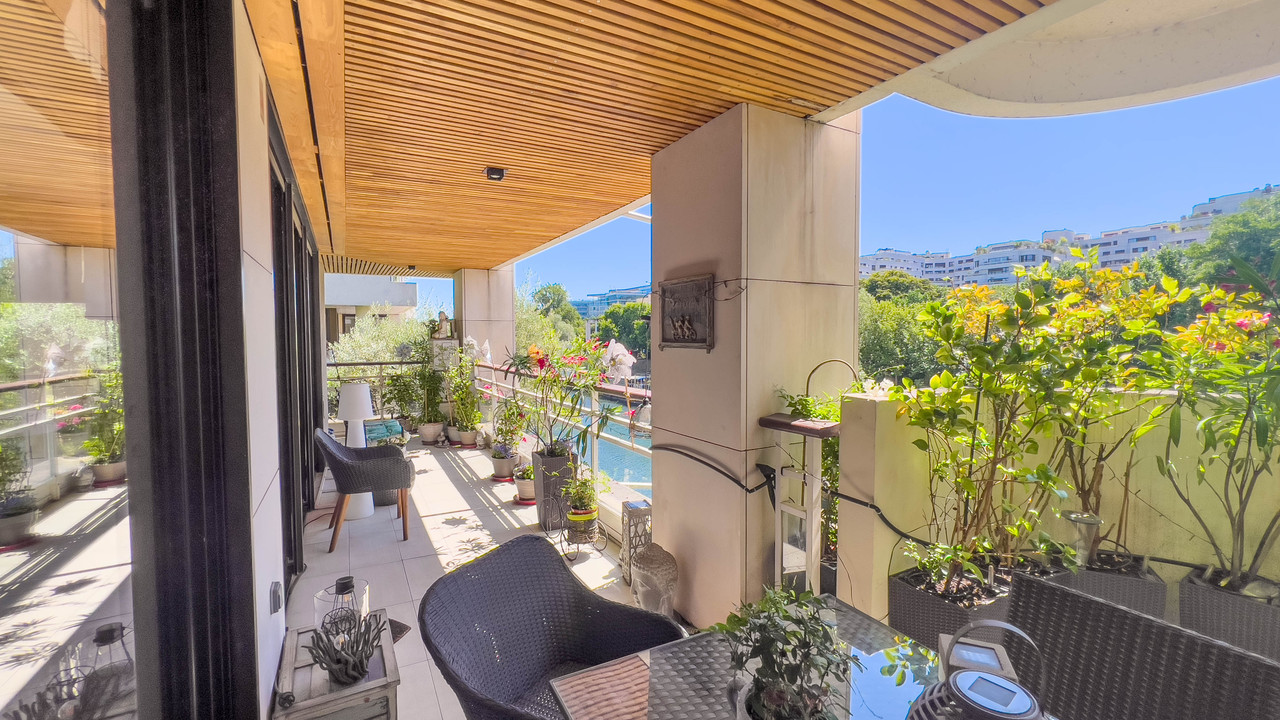A38507DPE92 - L'Ile de la Jatte, enclave résidentielle et véritable parenthèse verte sur la Seine, 4P (T4) de standing, lumineux, sans vis-à-vis, 113,09m2 + terrasse SE de 26,58m2 en front de Seine. Bel accès quasi sans voitures, au 2e étage d'une petite résidence récente (6 appartements), sécurisée et bien entretenu, de 1990 avec asc., il profite de beau volumes et un jolie panorama bucolique sur les péniches amarrées.
