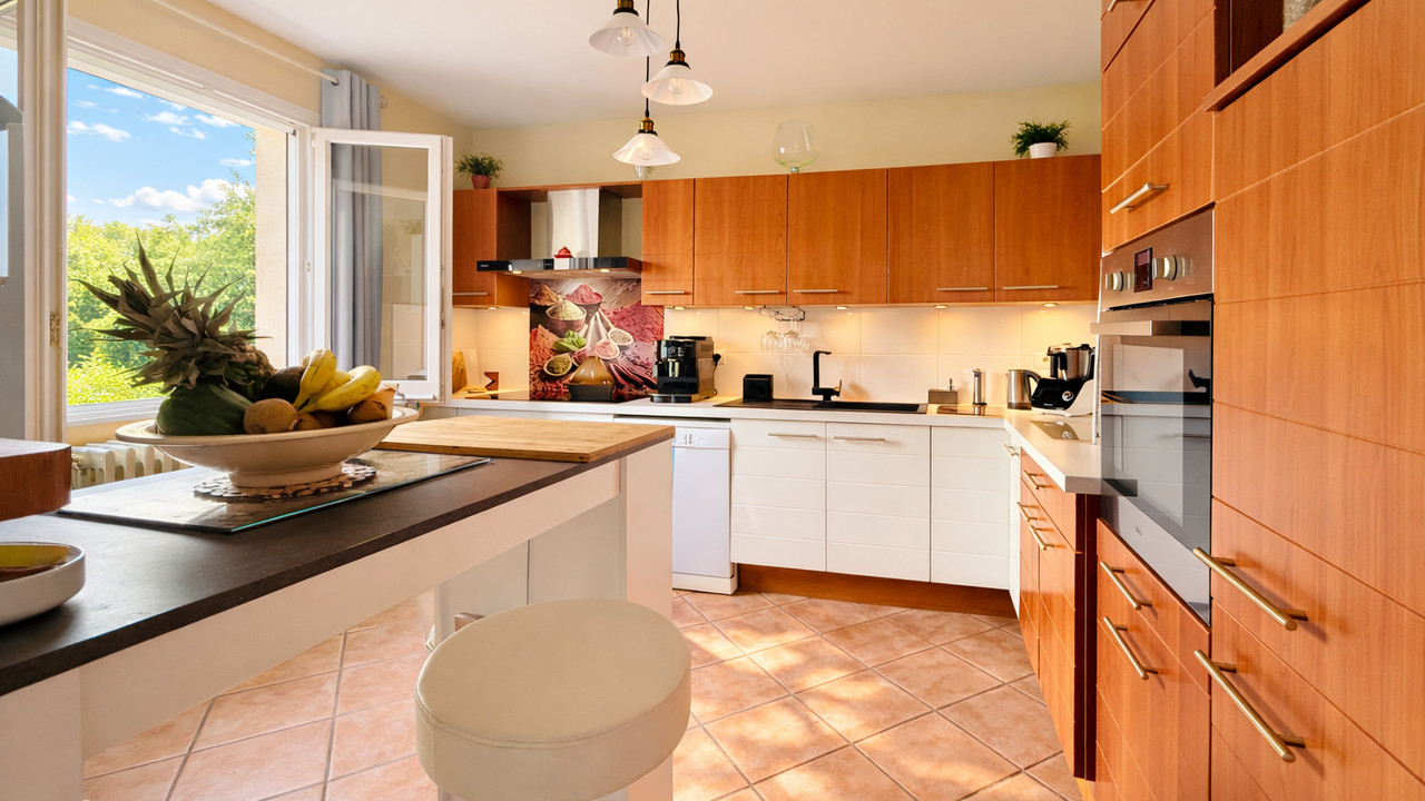 Le rez-de-chaussée abrite un charmant appartement indépendant de 45 m², tandis que le premier étage s'ouvre sur un spacieux salon/salle à manger de 52 m² avec cheminée avec insert, une cuisine moderne équipée, une salle de jeux, 2 chambres et une salle de bains familiale.