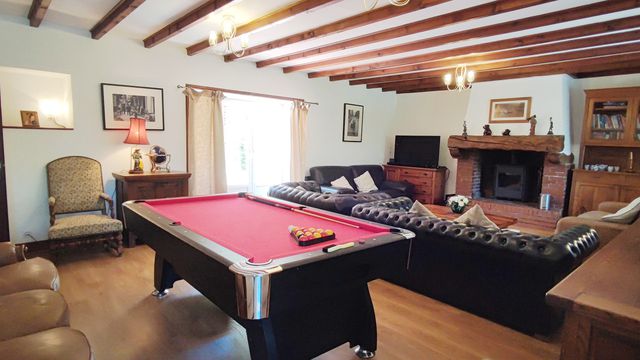 Rare opportunité : deux magnifiques maisons historiques rénovées, une du XVe siècle (3 chambres) et une du XVIe siècle (Gîte de 6 chambres), nichées dans un parc paysager avec verger et jardins. Un studio bien-être construit sur mesure avec baies vitrées coulissantes s'ouvre sur une terrasse en bois offrant une vue panoramique sur la campagne.