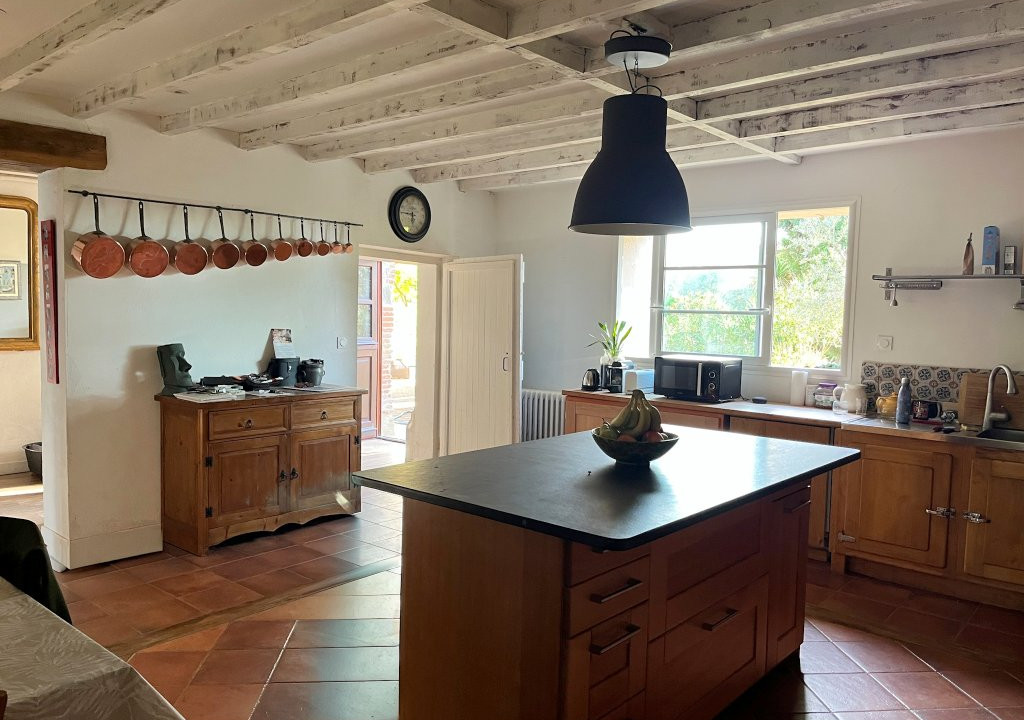 A41266STS81 - Dans un petit village du pays de Cocagne, cette longère de 348 m² vous séduira par son charme authentique. Posée sur un vaste terrain arboré de plus de 8 300 m², elle offre un cadre de vie rare, où l'espace et la nature s'équilibrent avec le confort moderne. La maison déploie de très beaux volumes : l'ancienne étable réhabilitée en séjour de 60 m², une cuisine avec îlot et four à pain, un salon , un cellier aménagé, une cave, sept chambres spacieuses, 2 salles d'eau, une salle de bains. Pour vous offrir un quotidien agréable, une pompe à chaleur et 2 poêles à bois ont été installés. À l'extérieur, une terrasse avec vue sur la piscine invite aux moments conviviaux et le terrain paysager parfaitement entretenu crée une atmosphère apaisante. Deux puits équipés, un interphone et une vaste dépendance de 160 m² comprenant un local technique, un atelier et une terrasse panoramique viennent compléter l'ensemble. A 7 kms de Lavaur avec tous commerces, 7 kms de l'A68 et de la gare SNCF.