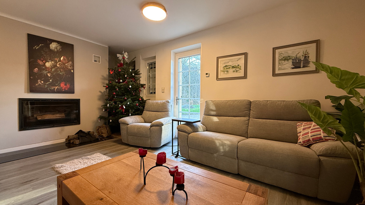 La maison principale offre environ 176 m² habitables avec cuisine dinatoire équipée, salon chaleureux avec insert, salle de bains et quatre chambres dont une avec dressing. Une pièce supplémentaire complète l'ensemble.