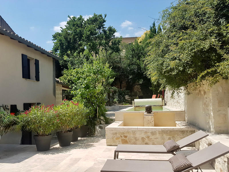 A35829KS30 - Niché au cœur d'Uzès, à quelques minutes de la Place aux Herbes et surplombant la Vallée de l'Eure, cet ensemble allie charme authentique et confort moderne. Son jardin luxuriant accueille une piscine chauffée de style romain, une terrasse en travertin et un espace ombragé idéal pour la détente.