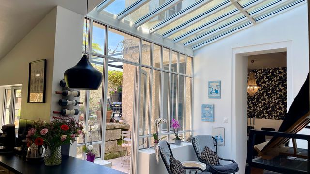 A44118MGD33 - EXCLUSIVITE! Propriété exceptionnelle, maison de village en pierre, rénovée entièrement en gardant son caractère et charme. Environ 300m2 surface habitable, salon/séjour plus 2ème petit salon, salle à manger élégante, belle cuisine et verrière donnant sur le jardin, 4/5 chambres y compris grande suite parentale avec sa salle de bain et dressing et toit terrasse avec belle vue sur les vignes. Jardin clos avec belle terrasse et coin bbq. Dans le bourg du joli village de Fronsac, proche Libourne