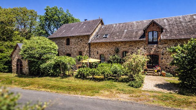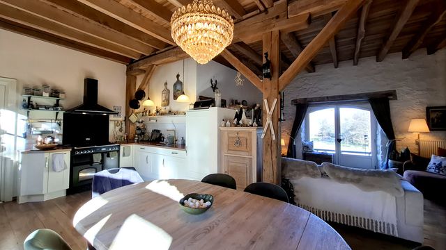 A42128LAD87 - Magnifique moulin rénové offrant des vues panoramiques sur plus de 2 hectares de terrain privé avec rivière, bois et jardins. La propriété comprend une maison principale avec 2 chambres (dont une avec salle de douche attenante) et une chambre supplémentaire de 15 m² avec salle de douche, ainsi que deux gîtes indépendants avec cuisine, séjour et chambres, actuellement exploités en gîtes/B&B. Surface habitable totale de 350 m² avec parquet, poutres et murs en pierre. Comprend ancien moulin de 200 m², grange, dépendance, atelier, serre, potager et 4 panneaux solaires. Idéal pour vie familiale, activité touristique ou B&B, à seulement 10 min des commerces, 15 min de Saint-Yrieix-la-Perche et 25 min de Limoges.