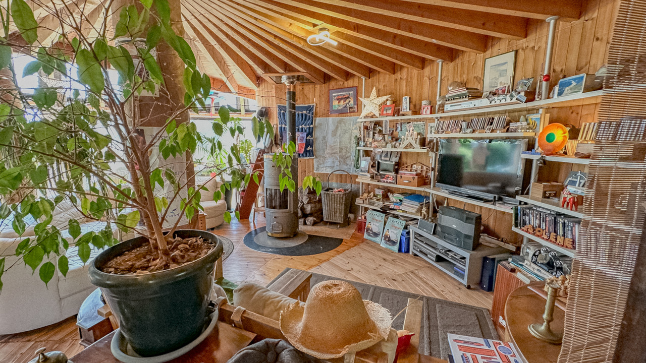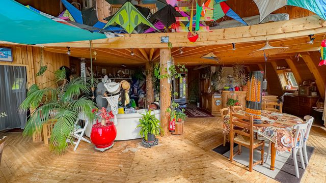 Construite essentiellement à partir de matériaux naturels et renouvelables, la maison est recouverte de bardeaux et repose sur une ossature bois qui assure une excellente isolation thermique ainsi qu'un climat intérieur sain et respirant tout au long de l'année. Sa silhouette organique s'intègre parfaitement dans le paysage boisé, où se déploie une végétation soigneusement choisie : arbres matures, arbustes et flore sauvage.