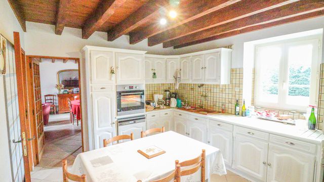A23231DB86 - Dans la campagne cette belle propriété offres une grande maison principale (211m²) avec 3 chambres avec une deuxième maison (99m²), gite, grange et hangar et en plus approx 1.5 hectares de terrain au tour de la propriété. Moins de 15 minutes de la ville la plus proche avec magasins, restaurants et gare.