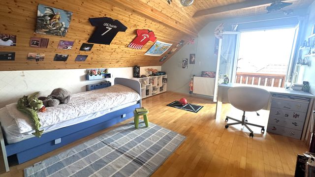 Cette propriété spacieuse bénéficie d'un jardin mature et d'une lumière naturelle abondante. Sa terrasse orientée sud-ouest, qui donne directement sur la cuisine et le salon lumineux, offre des vues sur les montagnes du Jura et est idéale pour des moments conviviaux.