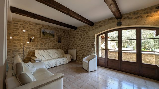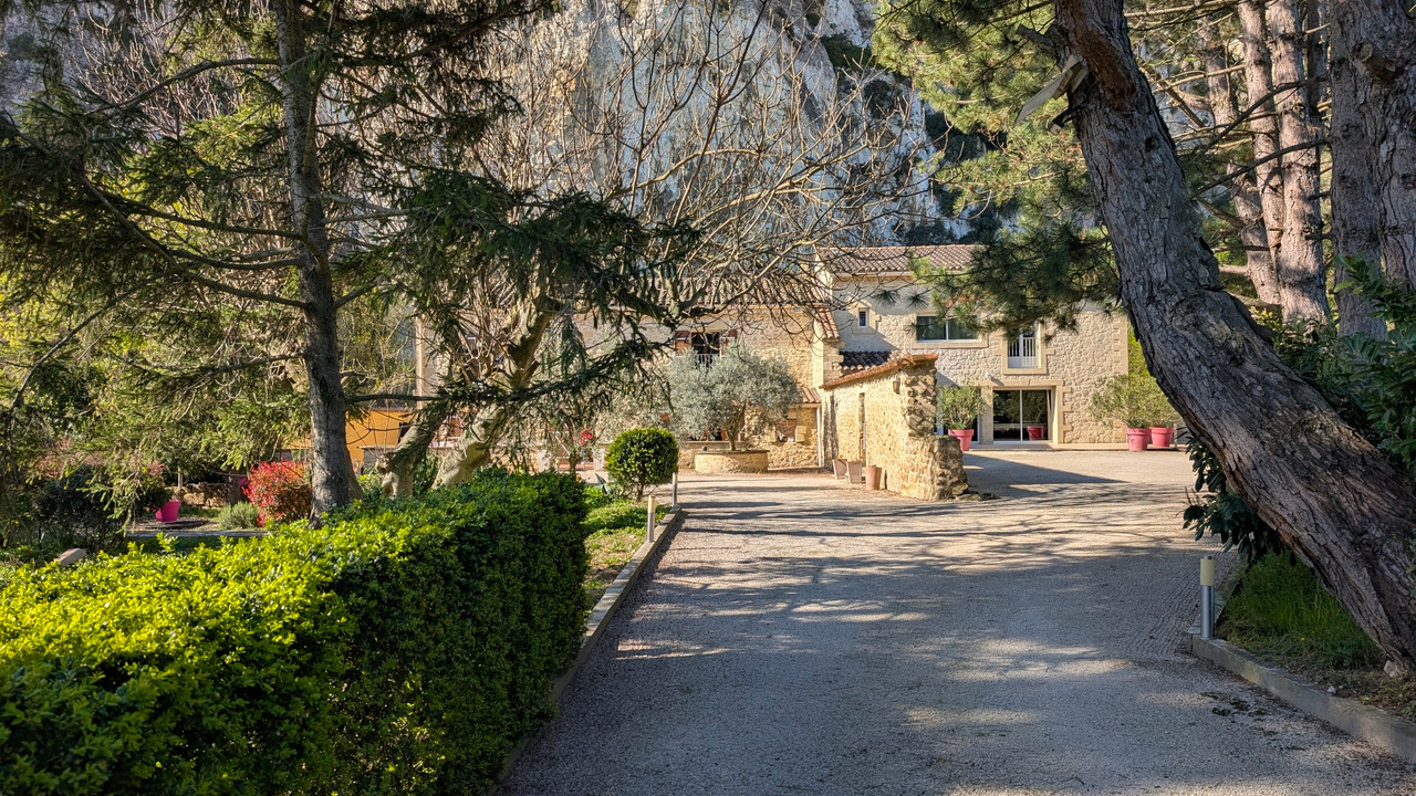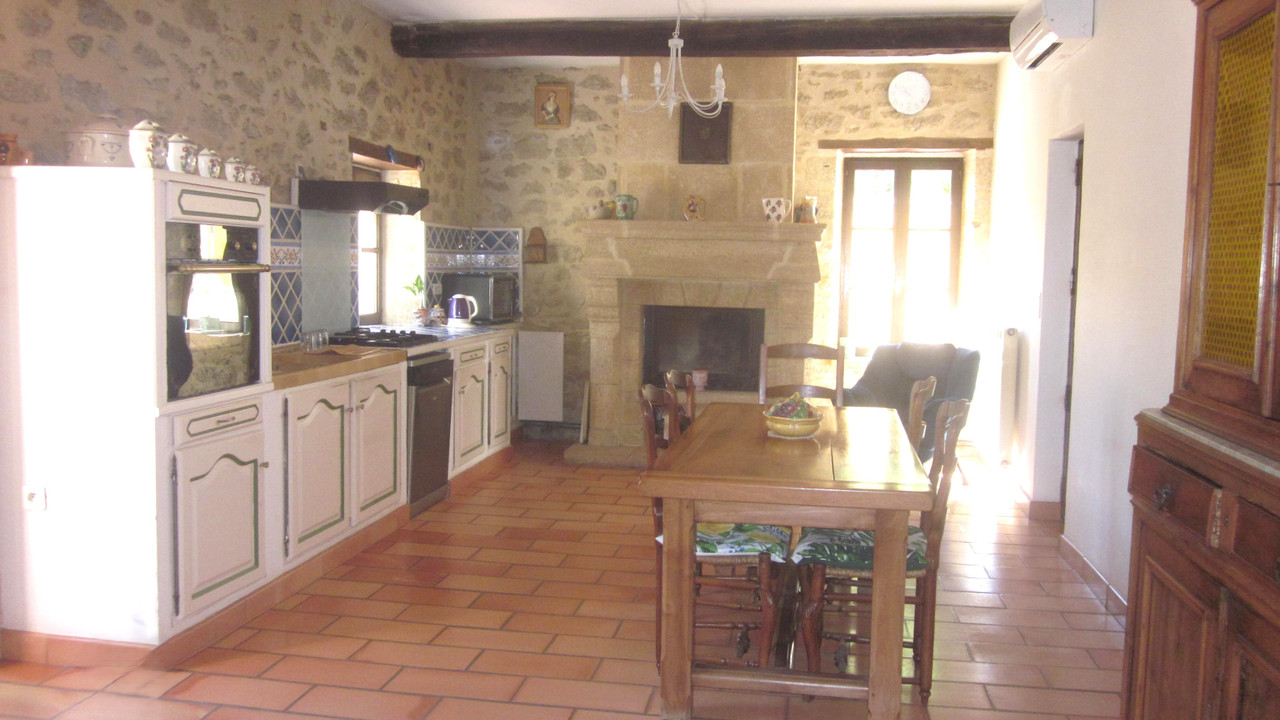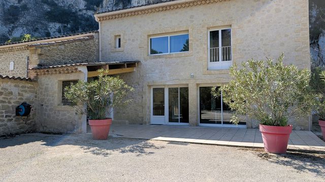 A36338JOB30 - À seulement 5 minutes de Villeneuve-lès-Avignon, sur la commune de Sauveterre, en pleine campagne et à l'abri des regards, ce superbe mas en pierre de 265 m², ancien moulin à huile du XVIIIe siècle, a été rénové avec soin.