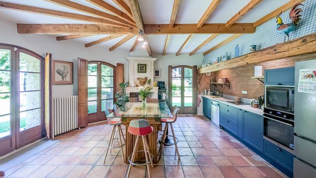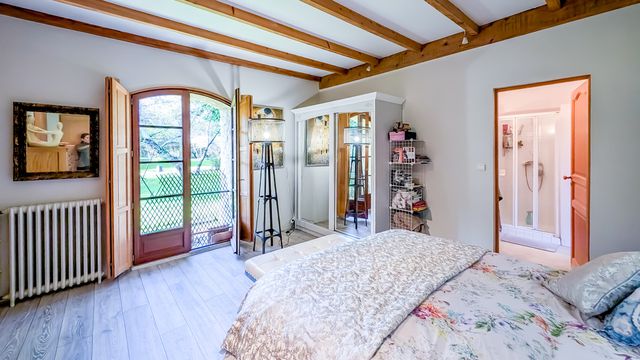 Elle se compose d'une maison principale de 262m² avec 3 chambres et 3 salles de bain, un moulin du 16ème avec une meule fonctionnelle pour la fabrication d'huile de noix et 2 roues à aube à rénover, un gîte récent de 65m², un grand garage et un hangar.