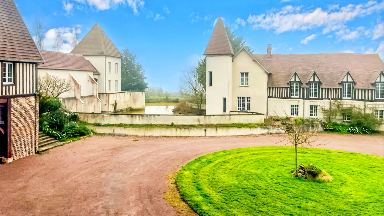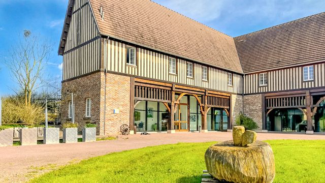 A35806YAL14 - À vendre : propriété normande de prestige au cœur du Pays d'Auge, à 45 km de Caen. S'étendant sur plus de 15.6 hectares, ce domaine d'exception comprend une maison principale de 250 m² et une annexe en colombages de 315 m² entièrement restaurée. La maison offre de vastes espaces de vie avec poutres apparentes, cheminées et accès à une terrasse surplombant un étang. À l'étage, plusieurs chambres, salles de bains raffinées et un grenier aménageable complètent l'ensemble. L'annexe, conçue en gîte, dispose d'une salle de réception, de cuisines équipées et de quatre suites spacieuses. Le domaine comprend également une cidrerie, un hangar agricole, des vergers certifiés bio et de nombreux équipements extérieurs. Fenêtres en double vitrage, chauffage par pompes à chaleur et toiture rénovée assurent confort et modernité. Idéal pour une demeure familiale ou un projet professionnel, ce bien rare offre une vue imprenable sur les vergers, bois et prairies.