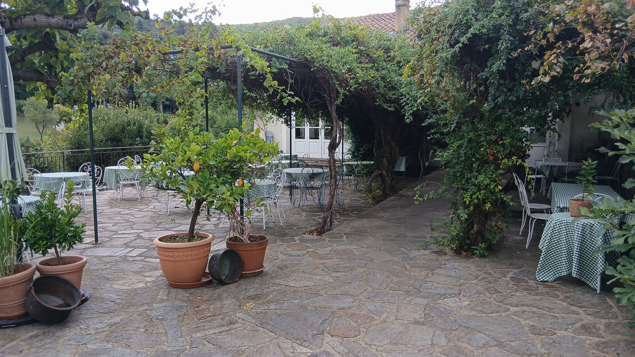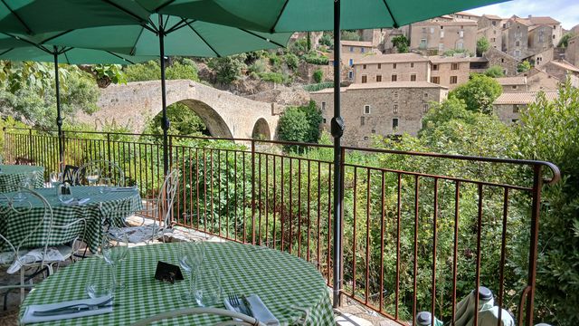 Restaurant avec terrasse panoramique, Olargues (Parc naturel régional du Haut-Languedoc) Murs et Fond