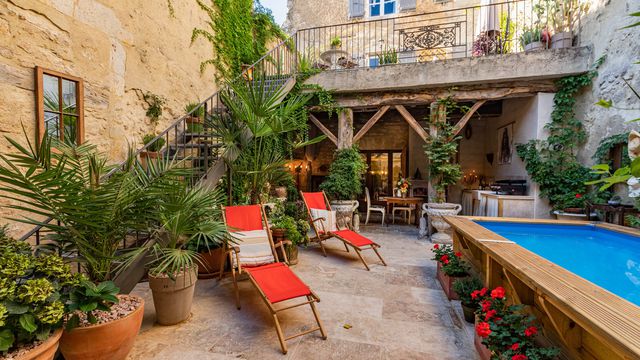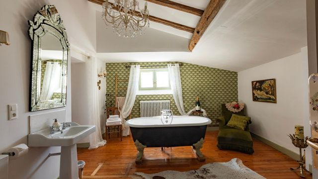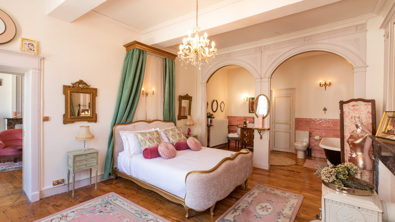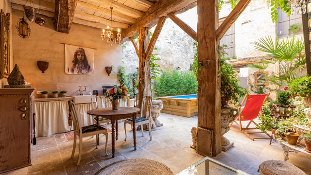 Cette propriété vraiment unique présente un mélange éclectique d'antiquités françaises, de pièces contemporaines excentriques, d'une petite influence franco-marocaine dans la cour et d'une décoration sur le thème du champagne, qui pourrait rêver de mieux ?