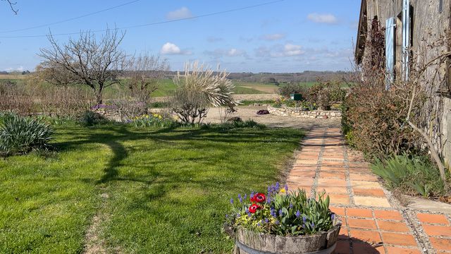 Spacieuse maison en pierre 4 chambres avec grande piscine, jardins et vue campagne près de Duras