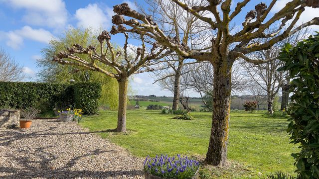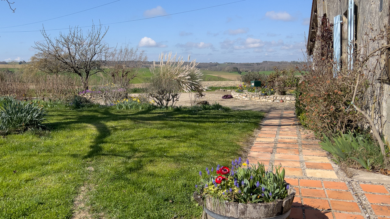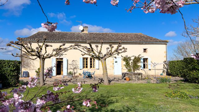 A42423AT47 - Maison de campagne en pierre d'environ 300 m², située au bout d'un chemin sans issue dans un environnement rural paisible avec vues sur la campagne, à seulement quelques minutes de Duras et de Lévignac-de-Guyenne (commerces, école et centre médical). La maison offre une vie principalement de plain-pied avec quatre grandes chambres et deux salles de bains, de beaux éléments de caractère (pierres apparentes, poutres et cheminées), un poêle à bois et un chauffage central au gaz (chaudière neuve 2023). Grenier non aménagé offrant du potentiel, avec possibilité de créer une annexe indépendante. Environ 4 000 m² de jardins, grande piscine (liner neuf 2024) et garage double intégré. Cadre campagne paisible sans être isolé, idéalement situé entre Duras et Marmande.