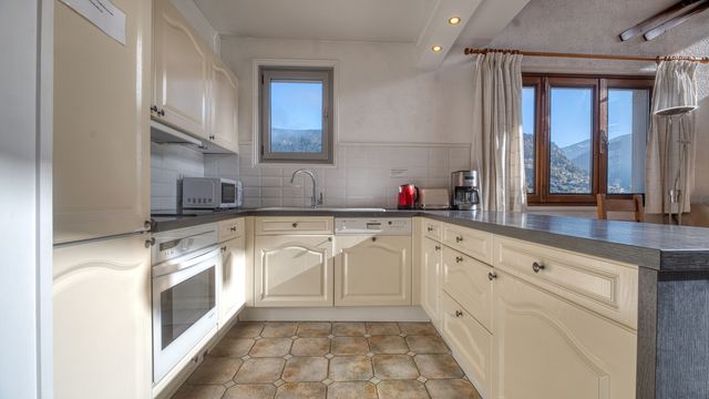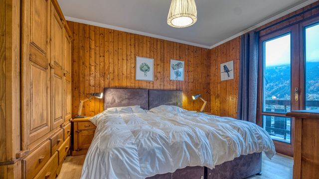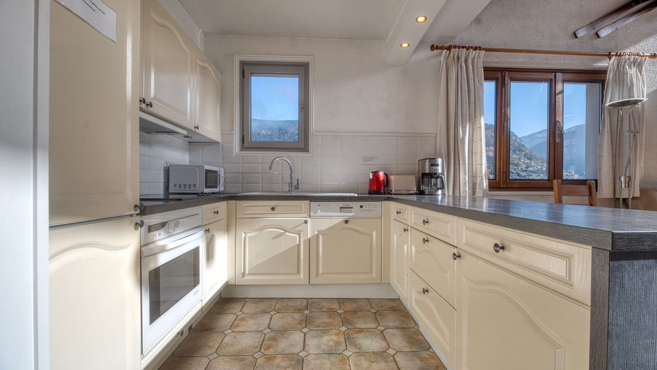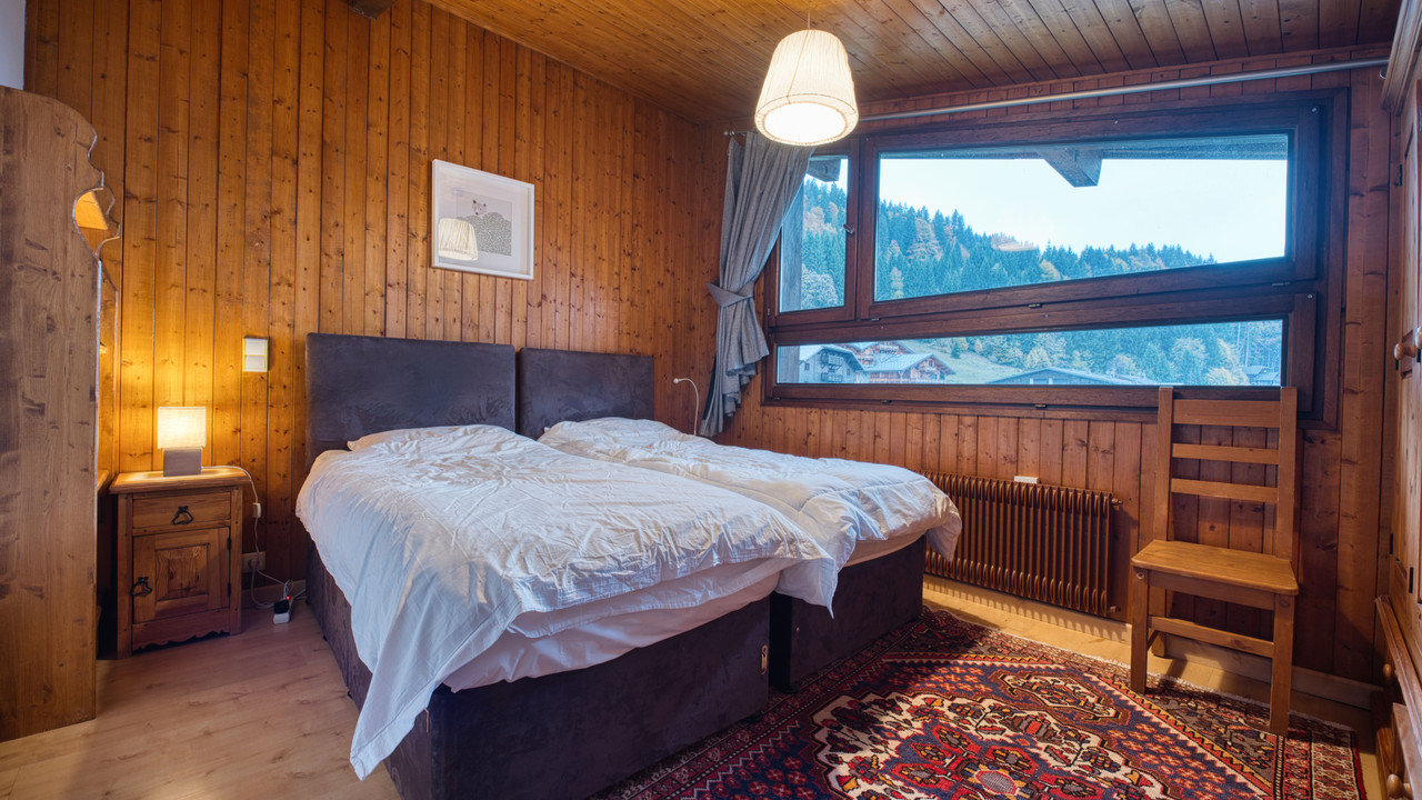 Parfaitement agencé, ce duplex se compose au premier niveau d'une entrée, de deux chambres, d'une salle de bain et d'un WC séparé. Un vaste séjour lumineux avec cheminée et cuisine ouverte donne sur une superbe terrasse offrant une vue imprenable sur Morzine et les montagnes environnantes. À l'étage, une grande mezzanine surplombe le séjour. On y trouve également une salle de douche avec WC et une spacieuse chambre double.