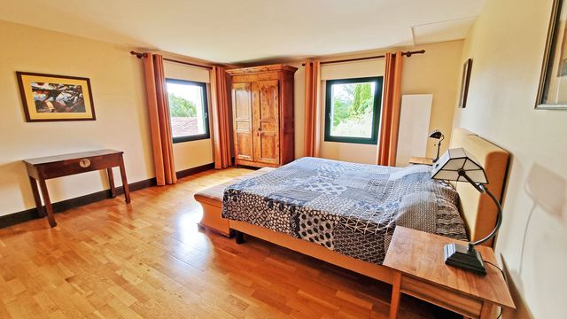 Les jardins offrent de nombreux endroits idylliques pour se détendre, profiter de la vue et de la tranquillité de cet endroit rural. Il y a un grand atelier sous la piscine et assez d'espace pour se garer sur le côté de la maison. La propriété est en hauteur du village de Bézac à seulement quelques minutes de Pamiers avec ses supermarchés, restaurants et toutes les commerces.