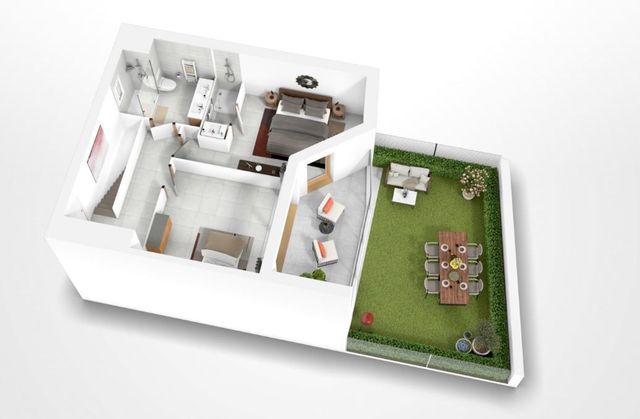 Ce duplex de T3 offre une surface habitable de 97m2 et deux terrasses spacieuses à chaque étage et un jardin privé au rez-de-chaussée. Une place de parking privée est incluse.