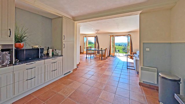 A43972SUG24 - Une allée bordée de cyprès mène à cette jolie maison de style traditionnel construite en 2008, qui semble pourtant être là depuis toujours, occupant une position dominante avec une vue spectaculaire. Sa grande cuisine ouverte sur le salon et la salle à manger a été conçue pour que la vue pénètre dans la pièce, pour en profiter confortablement toute l'année. La propriété est située sur son propre terrain, suffisamment spacieux pour accueillir un poney. Les informations sur les risques auxquels ce bien est exposé sont disponibles sur le site Géorisques : https://www.georisques.gouv.fr