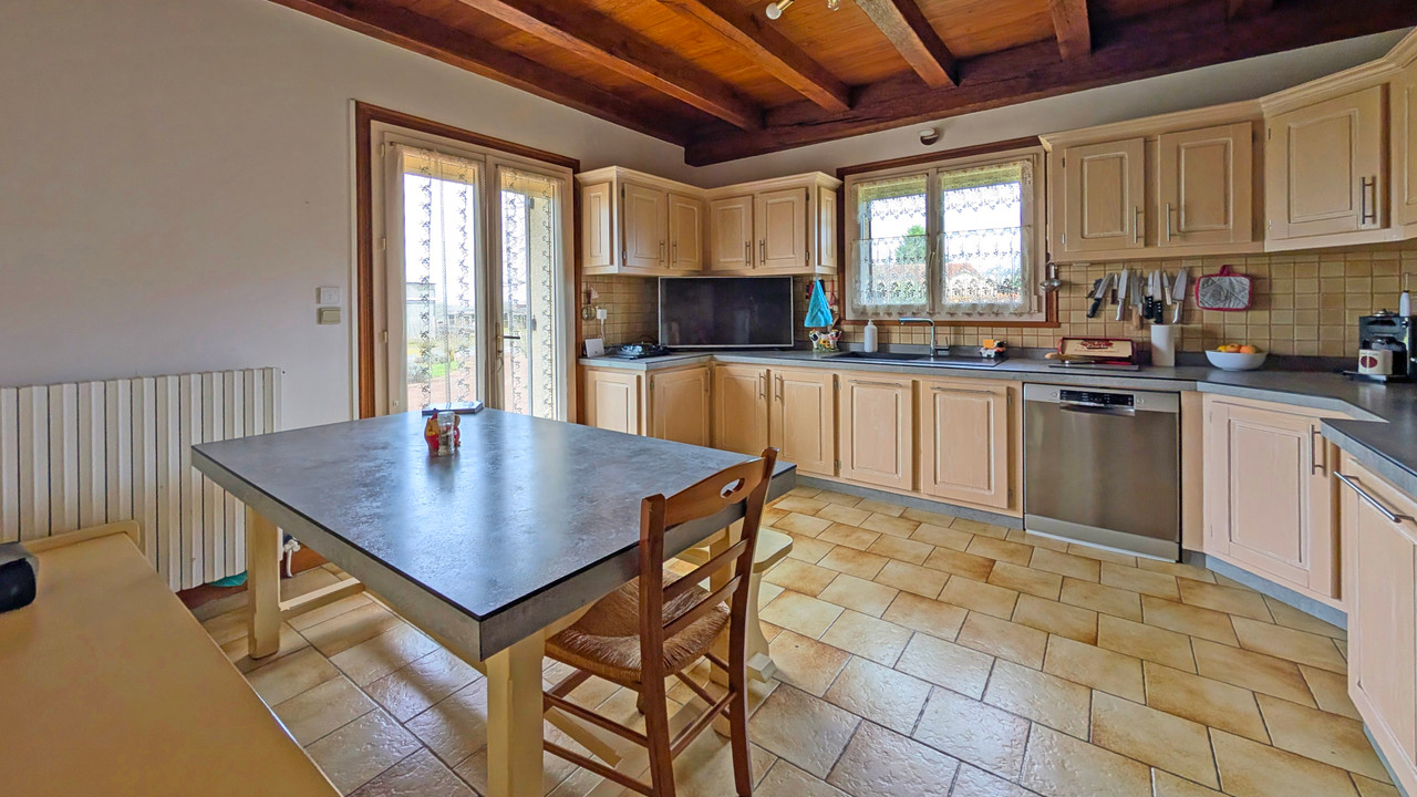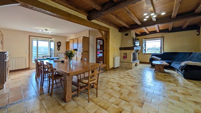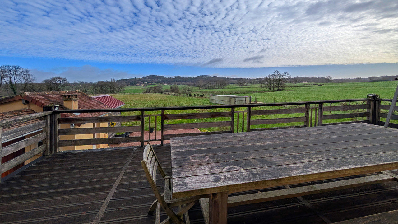 A42895SUG24 - Une maison à la campagne attrayante et spacieuse à la lisière d'un hameau, avec une vue imprenable et suffisamment de terrain et de dépendances pour des chevaux. La maison dispose d'un intérieur ouvert et d'une terrasse surélevée donnant sur la vue. Elle comprend 4 chambres dont une suite parentale au 2ème étage, une cuisine bien équipée, un four à pain, des panneaux solaires et son propre approvisionnement en eau !