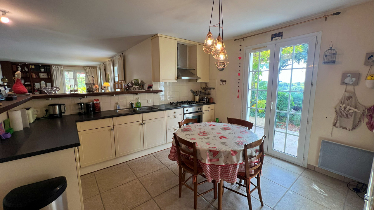 A40785JKB11 - Superbe villa exposée plein sud, dans un cadre paisible au-dessus du village d'Aragon, offrant une vue panoramique sur les Pyrénées. Grands espaces de vie, 3 chambres dont une suite parentale, piscine, cuisine d'été et jardin paysager.